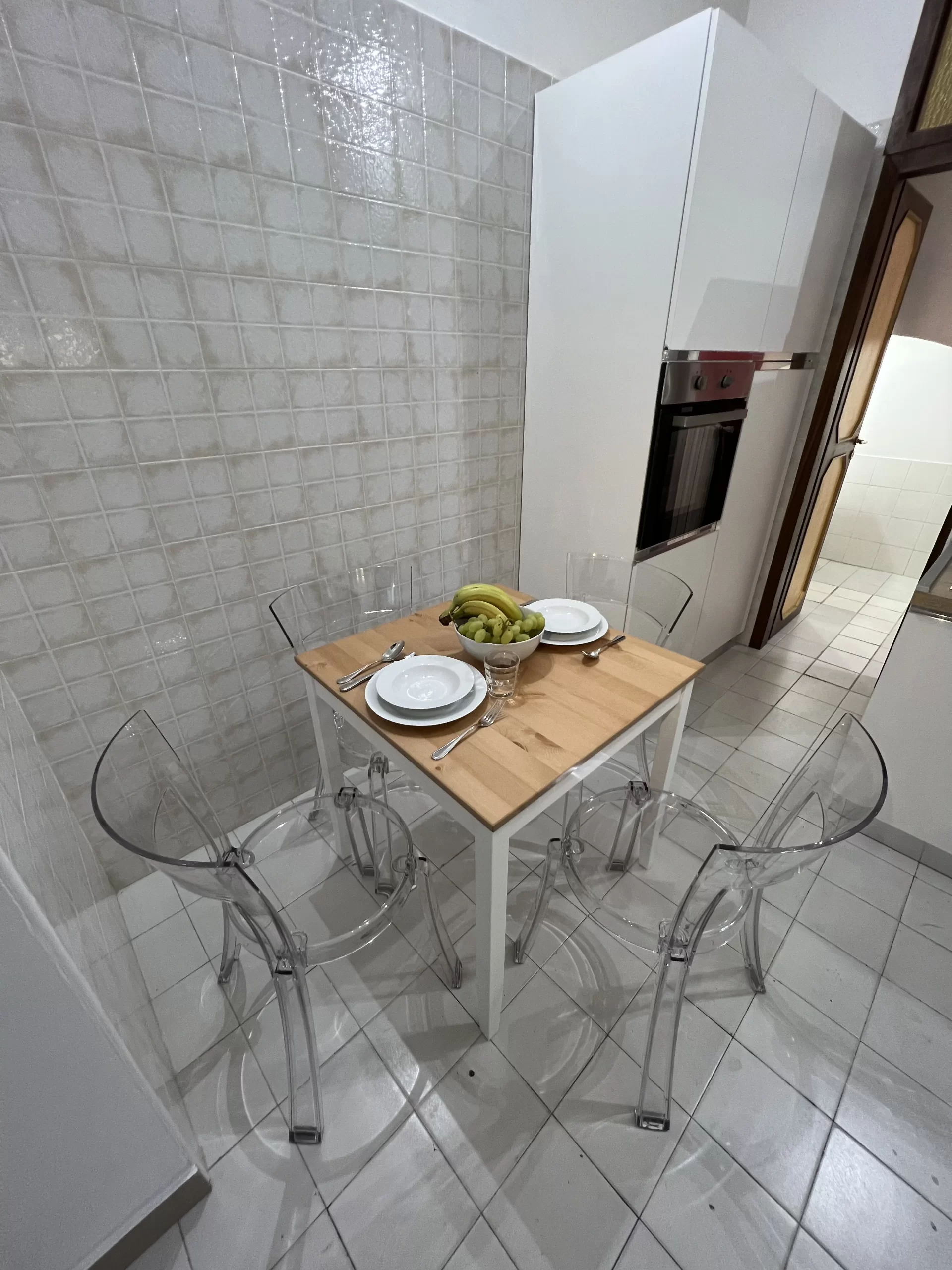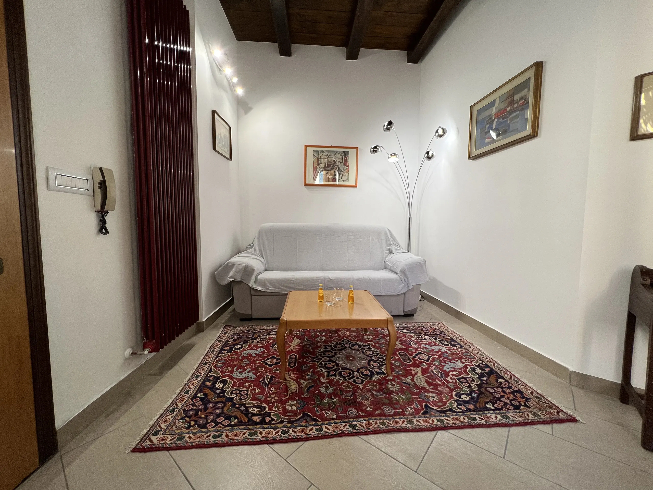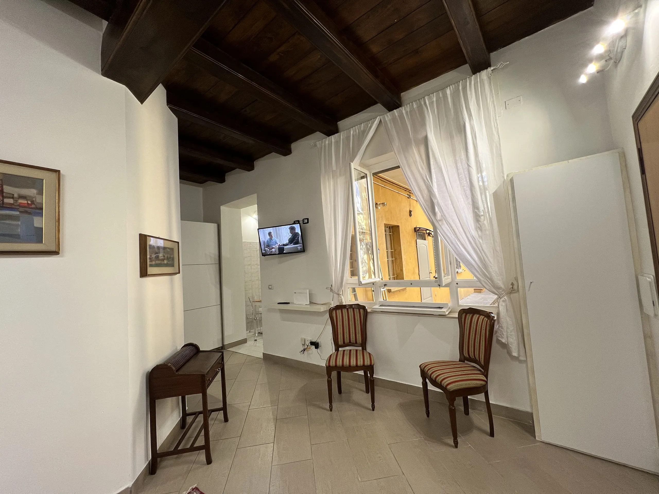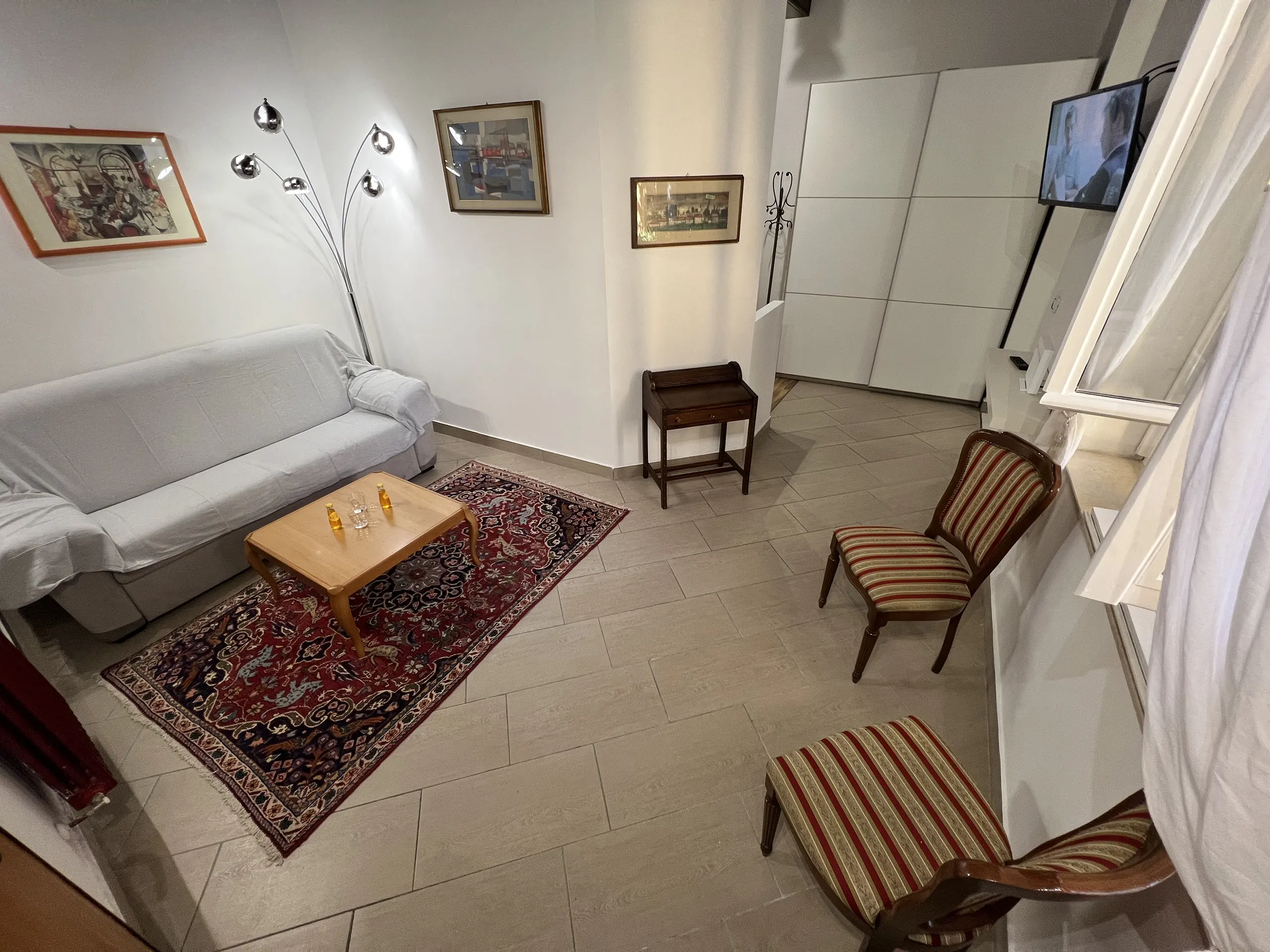Entrando dalla porta principale, ci si ritrova nel grazioso soggiorno (la zona living), sempre ben illuminato dalla grande finestra. La stanza si compone di un comodo divano letto matrimoniale, un tavolino da aperitivo e da dove si gustare la vista di televisore a schermo piatto. La zona pranzo composta da un tavolino con quattro sedute. La cucina è a vista completamente accessoriata dei maggiori elettrodomestici, quali forno, frigorifero, forno a microonde e macchina da caffè. Adiacente al soggiorno si trovano la camera da letto e il bagno.