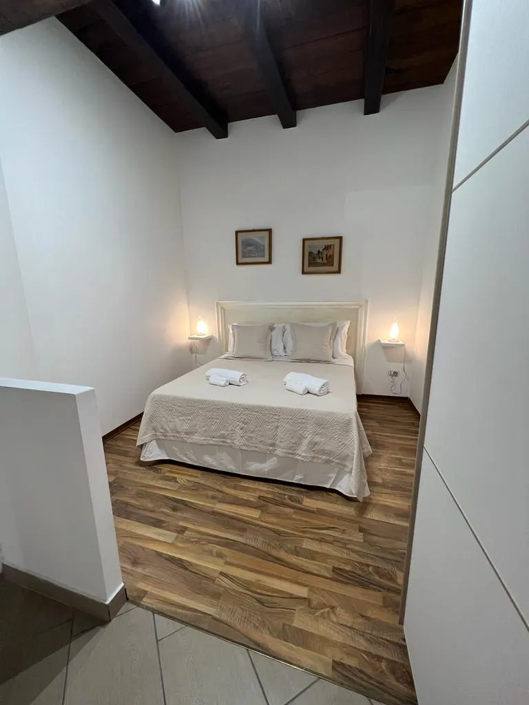 La camera da letto “open space” si compone di un comodo letto matrimoniale, accanto al quale si trovano due comodini. Nella stanza sono inoltre presenti una cassettiera e un’ampia finestra che illumina la camera durante tutta la giornata. All’interno della camera da letto si trova, inoltre, uno spazioso armadio, ideale per brevi e lunghi soggiorni. Il bagno, invece, si presenta molto elegante e completamente accessoriato con una doccia ampia e comoda.